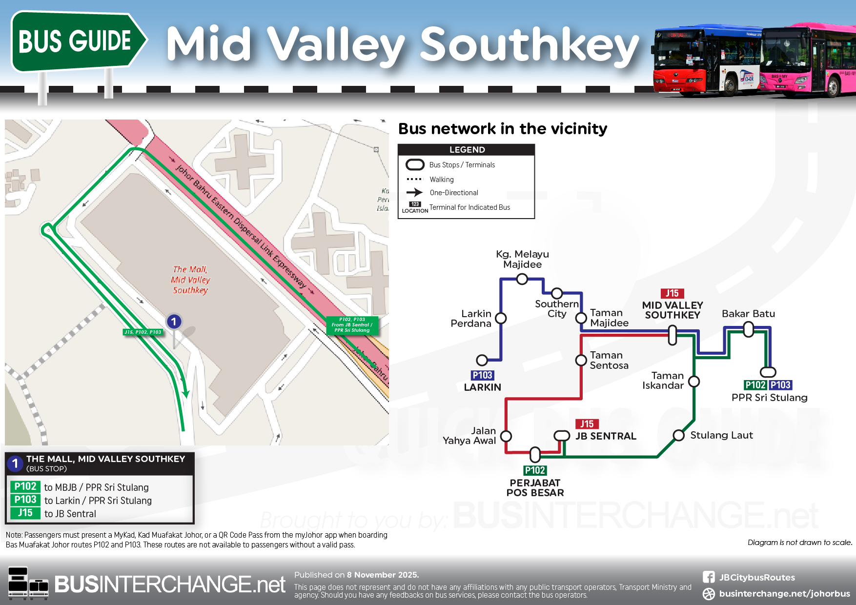 Bus J15 is the most convenient dedicated bus service that brings you to the bus stop outside The Mall, Mid Valley Southkey from JB Sentral Bus Terminal. Everyone is allowed to board bus J15.